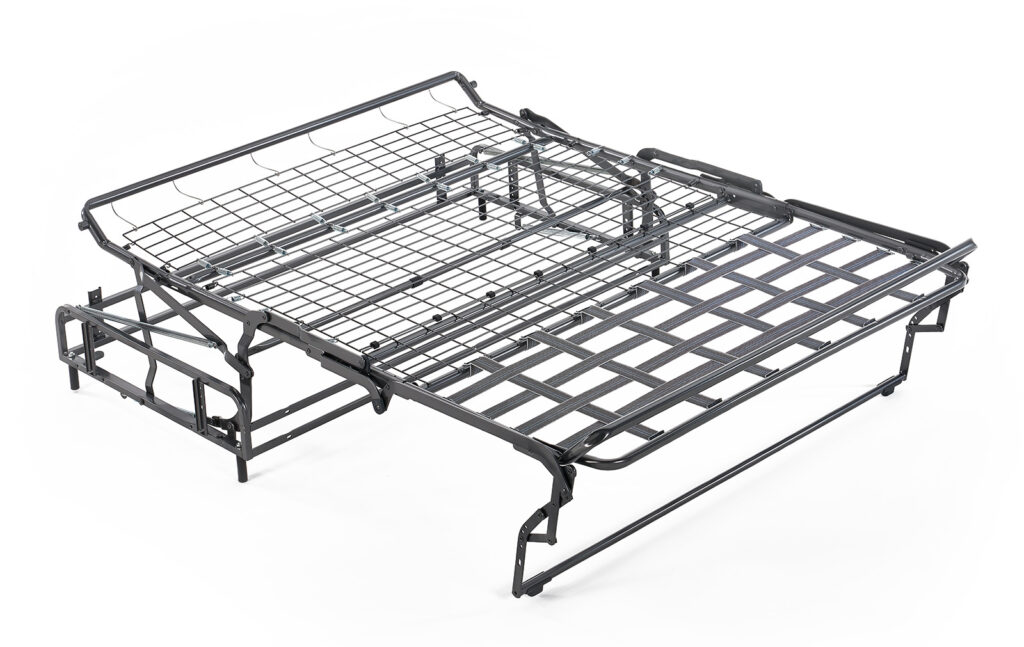 ed è disponibile in doga larga e doppia doga. Nel piano di seduta possono essere montate a scelta del cliente le cinghie elastiche oppure il pannello elettrosaldato. Il meccanismo Grecale certificato CATAS può ospitare un’ampia scelta di confortevoli materassi in poliuretano e memory di 14 cm di altezza.